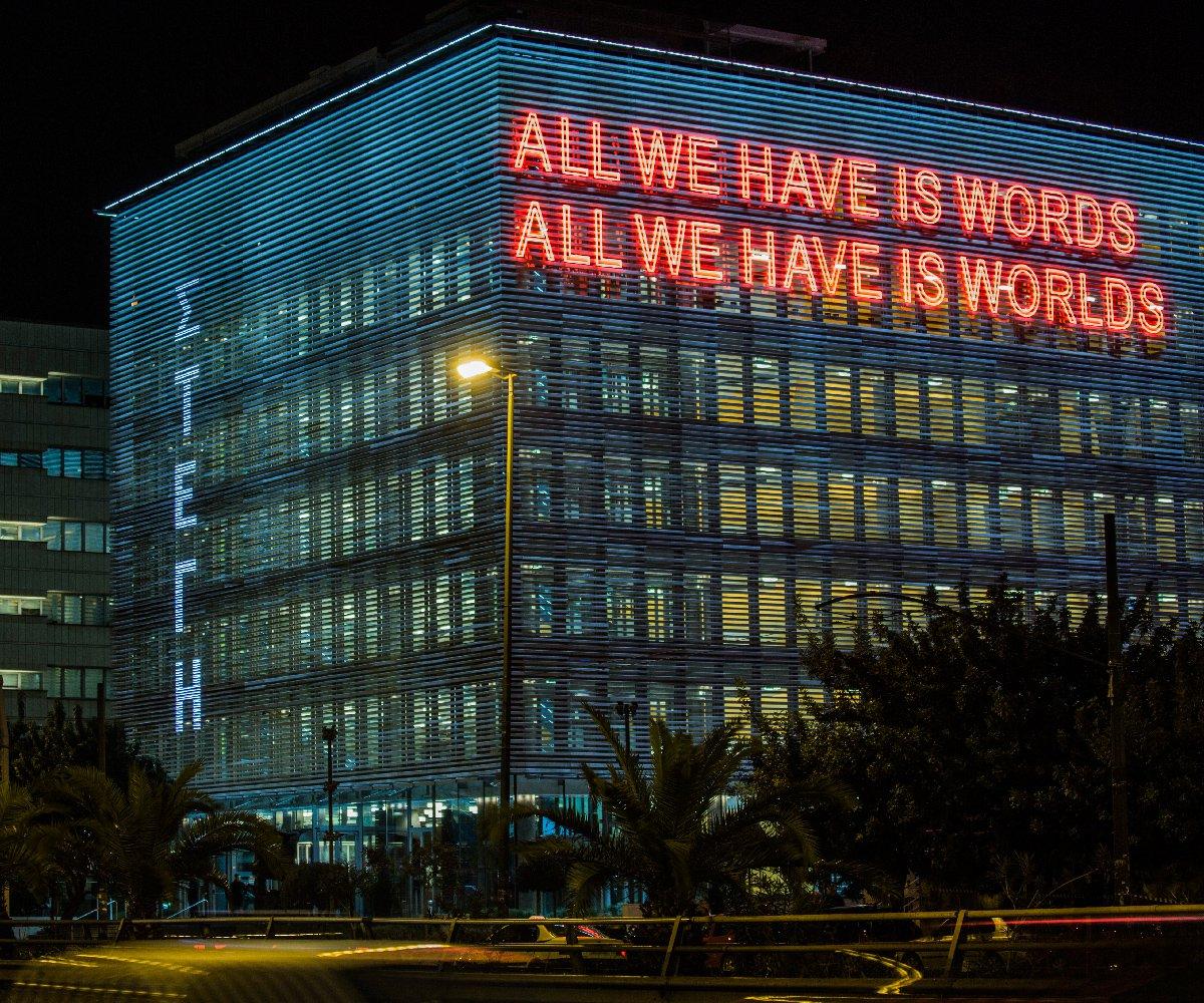 Installation by Tim Etchells, in Athens: https://en.wikipedia.org/wiki/Onassis_Stegi