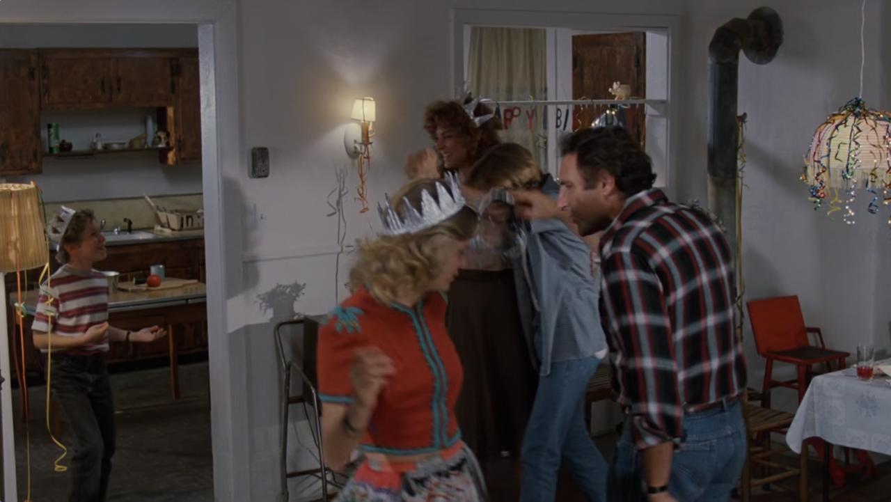 Fun small moment in "Running on Empty" (1988), Judd Hirsch, Martha Plimpton and River Phoenix dancing to "Fire & Rain" on the radio while celebrating mom's bday, while lil' bro air-guitars in the kitchen.