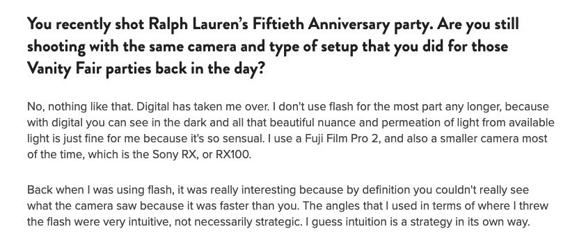 I miss seeing Larry Fink's flash on analog film; the frames felt alive, born of intuition and accident. Another excellent photographer whose new(er), digital work is (perfectly fine and acceptable) a shadow of the unpredictability once committed to emulsions.