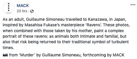 If you're gonna make a photobook based on Fukase's photobook about crows called "Ravens," the best title to pick would be "Murder," so good job on that score, Guillaume Simoneau.