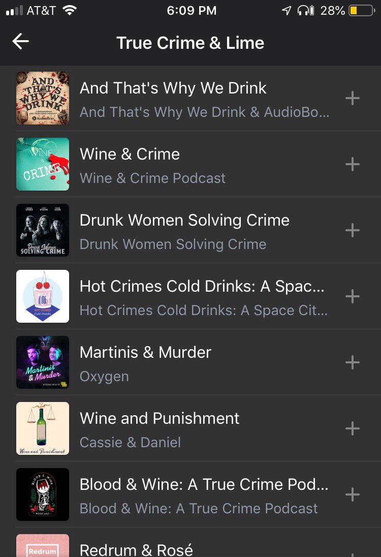 because of course there’s a genre of true crime podcasts that are also about drinking