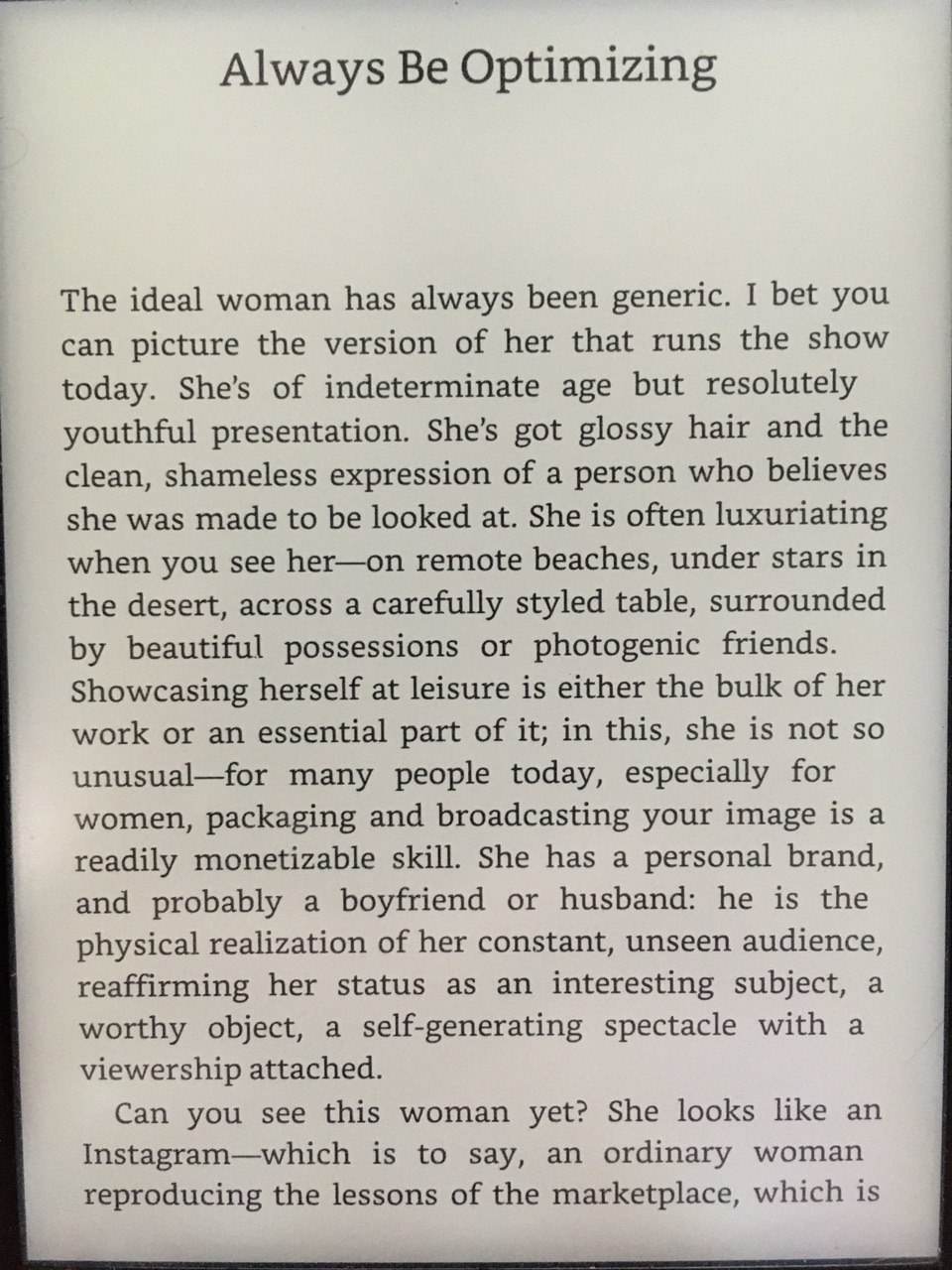 The “Always Be Optimizing” chapter in Jia Tolentino’s “Trick Mirror” is sensational.