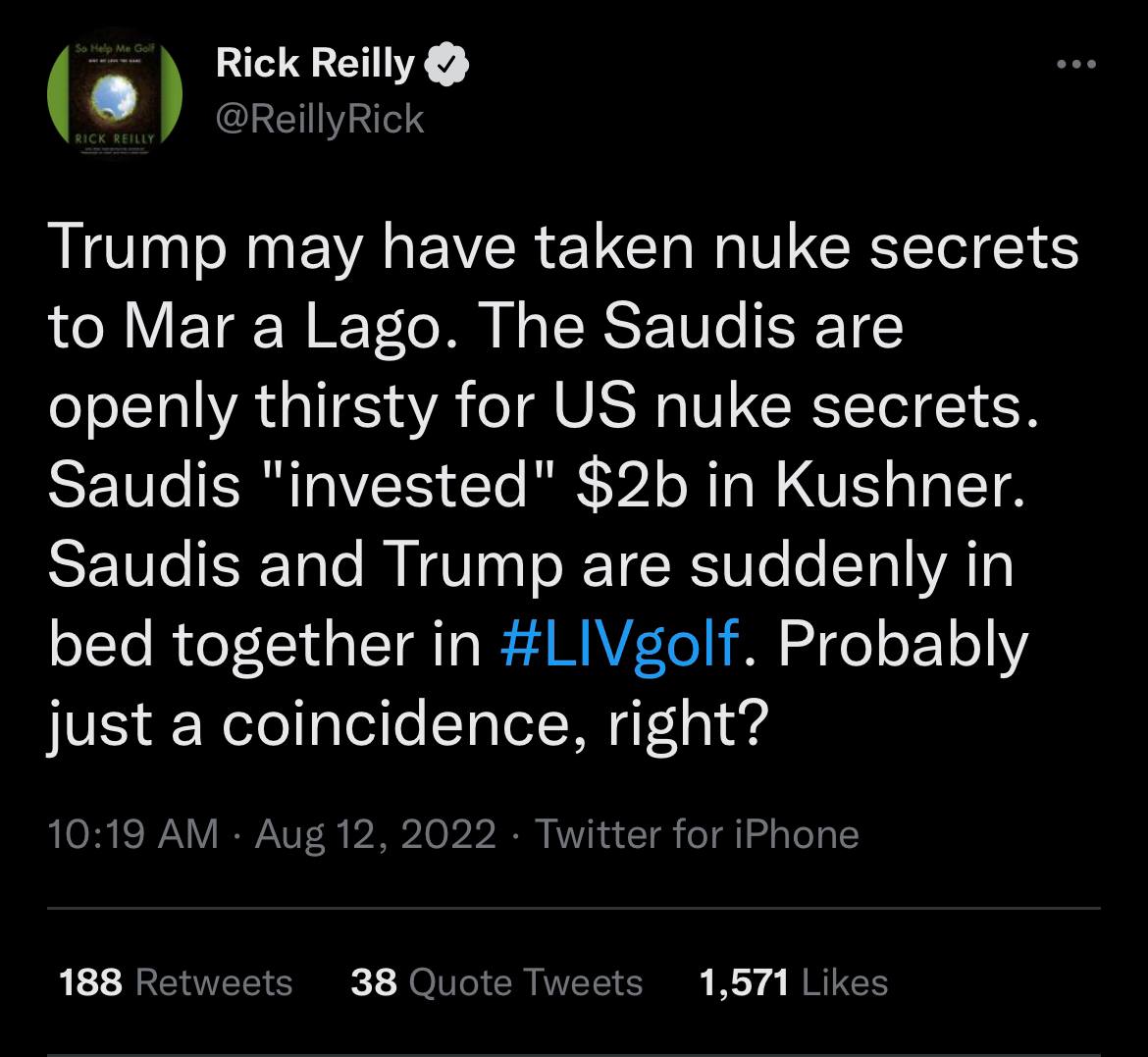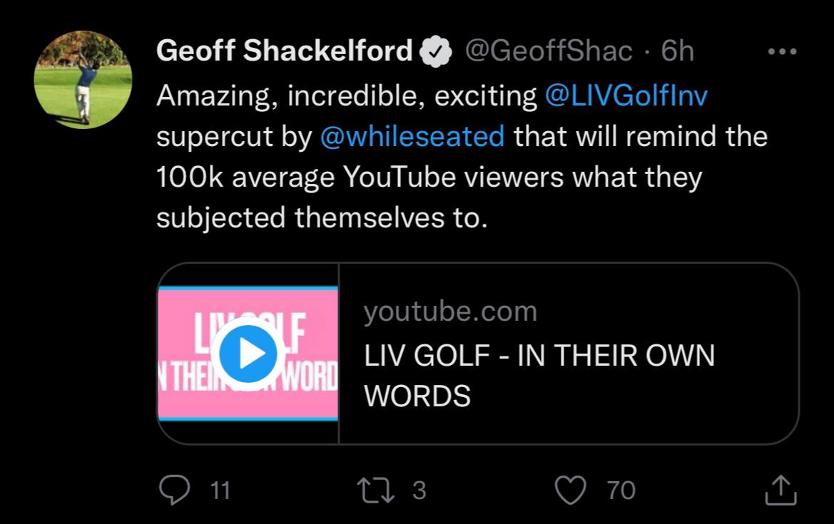 To answer the question no one asked, I made this to highlight how the entire effort from LIV/Norman/Saudi is pure puffery, a brand marketing exercise operating outside the bounds of market forces. It’s got the professionals of the game roasting over an ethical spit, and it’s been fascinating to see who’s most eager to be burned.