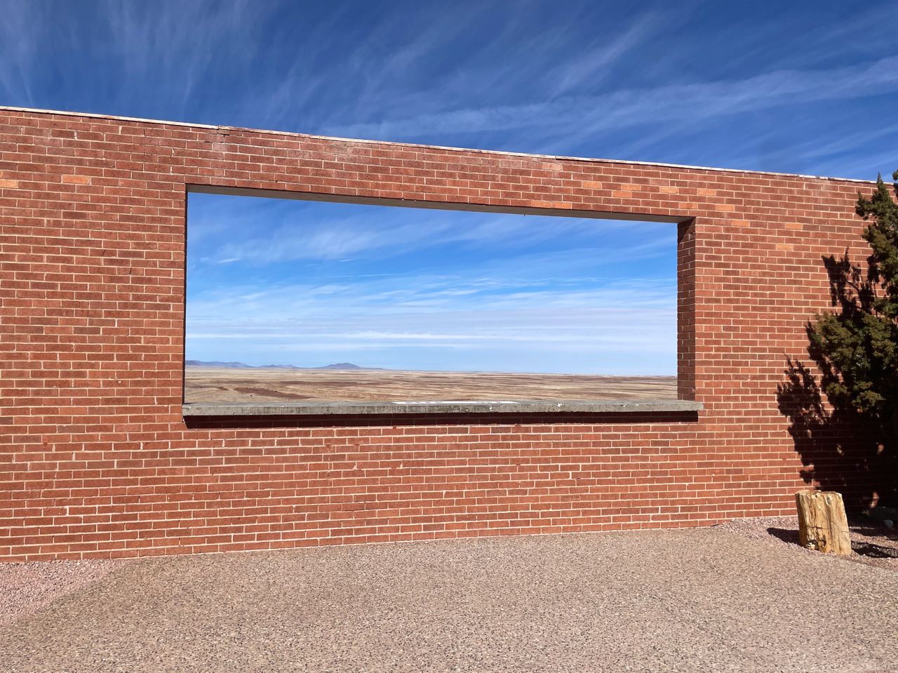 Was also surprised by this instagrammable "picture window" (of a kind) at the Meteor Crater visitor center, and how it framed a northwesterly view, back toward the giant San Francisco peaks that mark the northern-edge of Flagstaff.